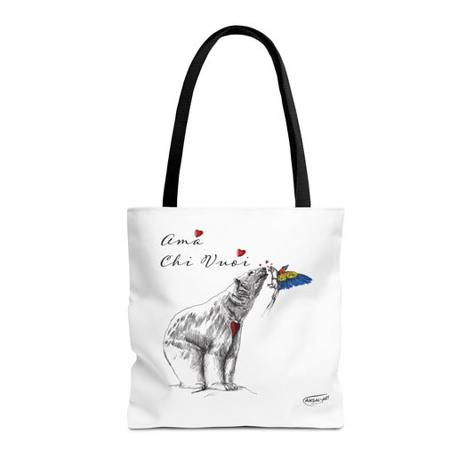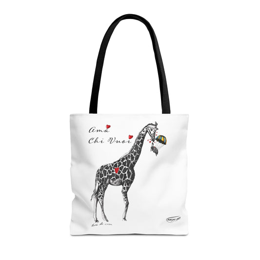 Orso e Pappagallo-Borsa tote giraffa stravagante - Design "Ama Chi Vuoi" per gli amanti degli animali