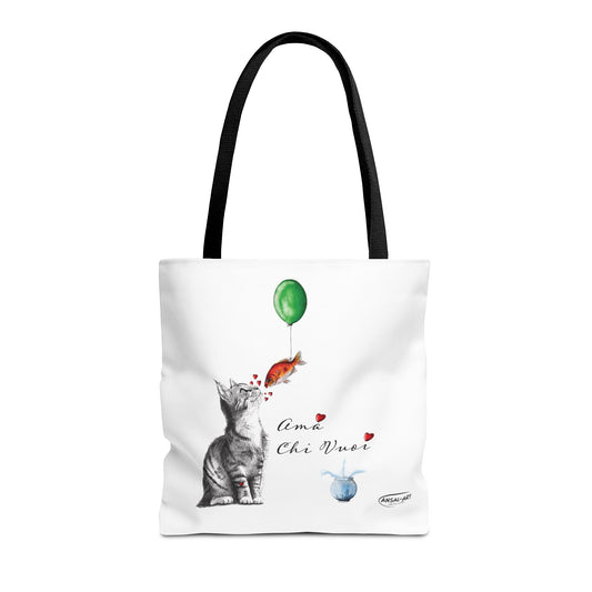 Gatto e pesce-Borsa tote giraffa stravagante - Design "Ama Chi Vuoi" per gli amanti degli animali