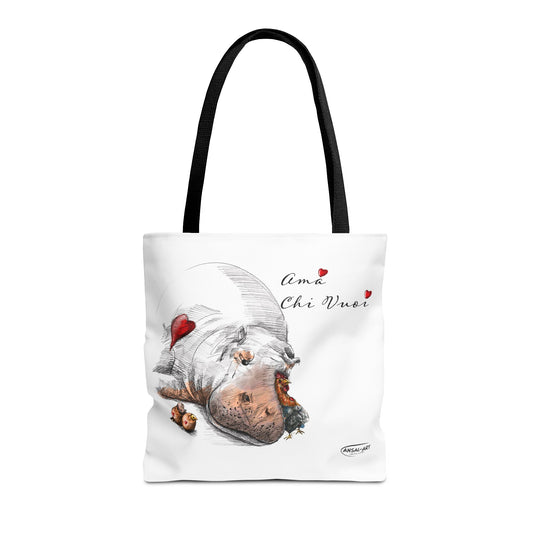 Ippopotamo e gallina-Borsa tote giraffa stravagante - Design "Ama Chi Vuoi" per gli amanti degli animali