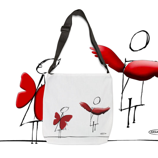 Questa borsa elegante e robusta è l'accessorio ideale per aggiungere un pizzico di arte al tuo look. Con la grafica distintiva delle ali rosse, è perfetta per portare con te tutto ciò di cui hai bisogno con un tocco di originalità.