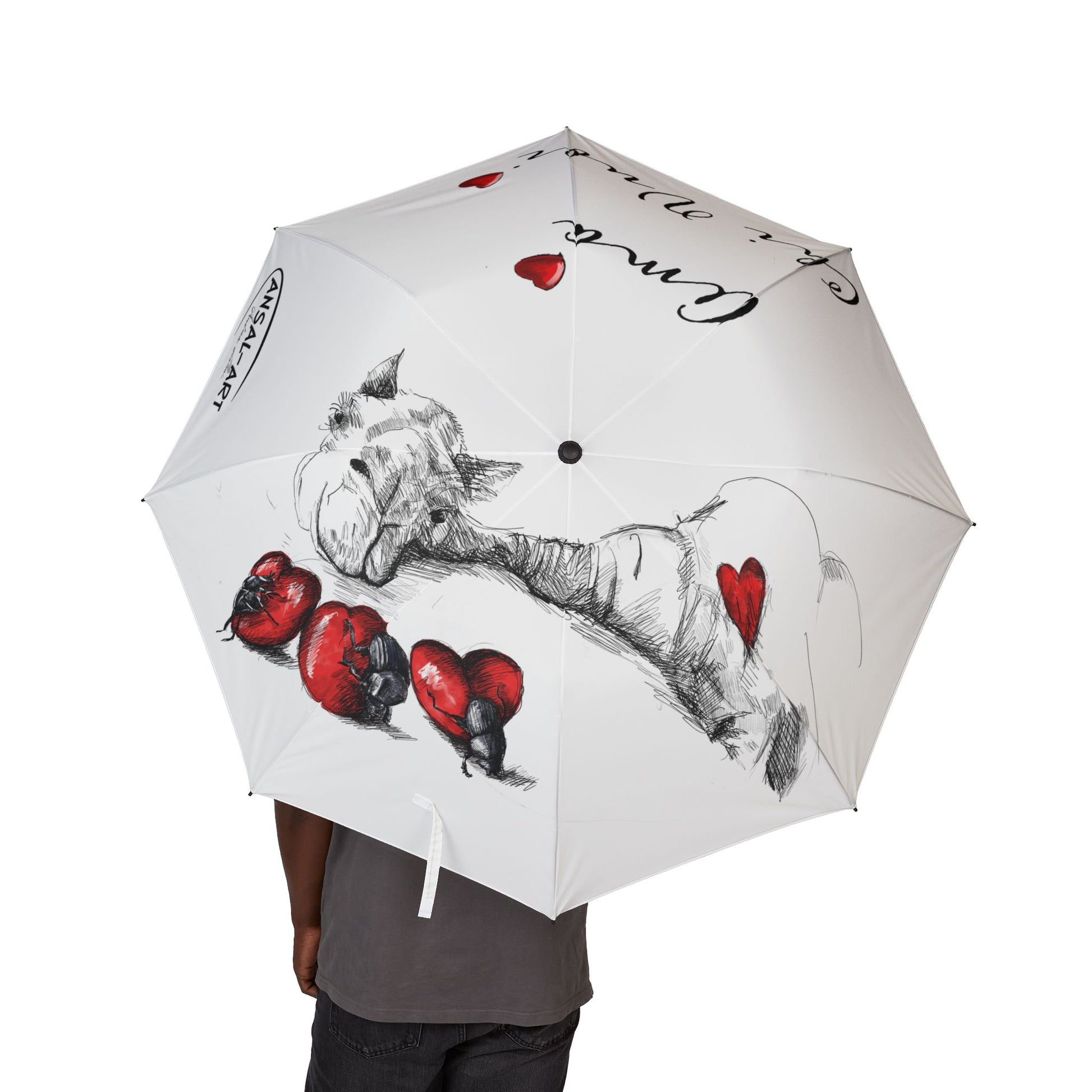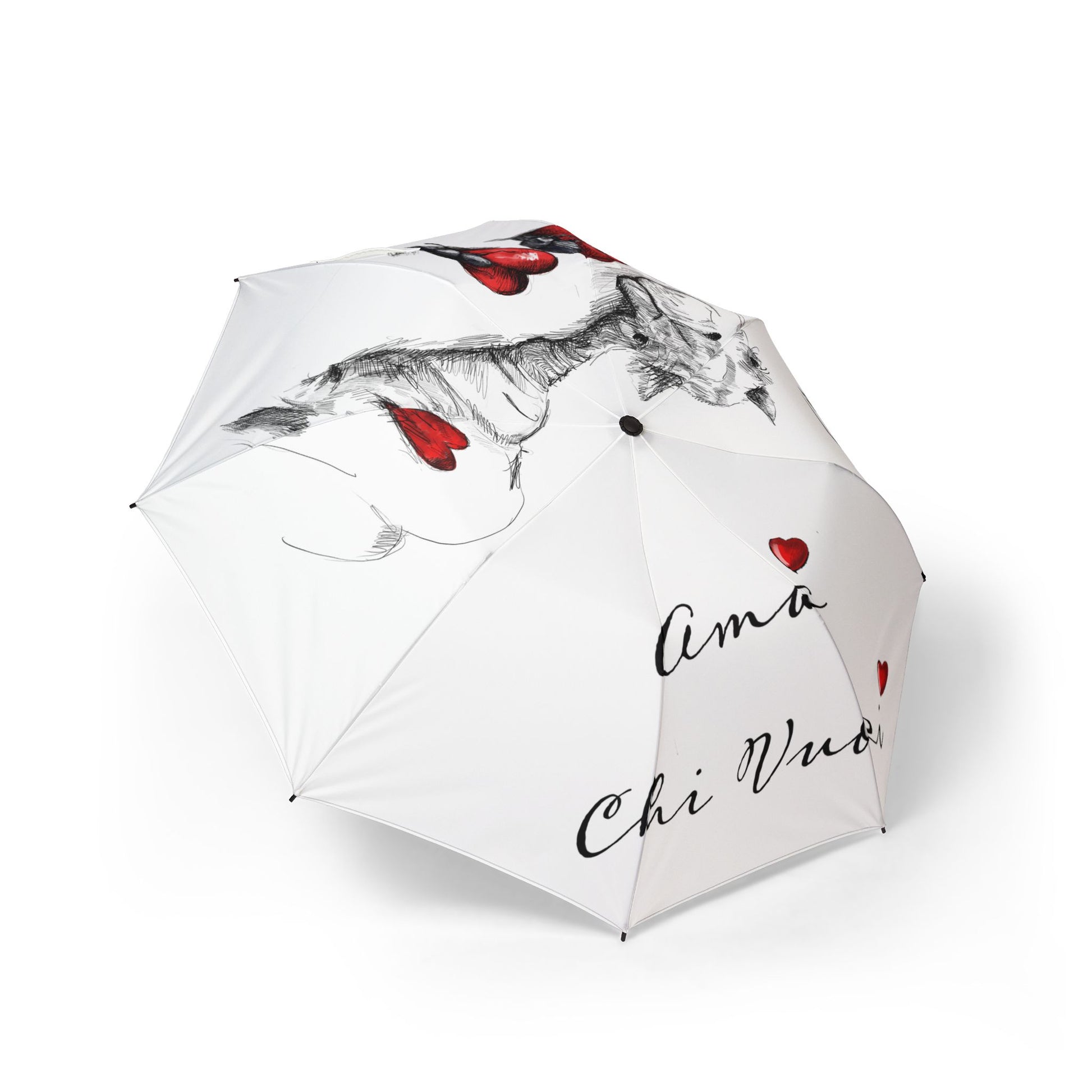Cammello ombrello pieghevole in alpaca romantico — "Ama Chi Vuoi" Heart Design